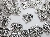 50個 ハート チャーム パーツ シルバー 銀古美 14mm ペンダントトップ 手芸材料のヒューイ h891