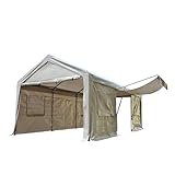 ガレージテント 車 大型 カーポート 3×6m ドア付き 窓付き 開閉可能 スチール製 頑丈 駐車 倉庫 収納 物置 (ベージュ)