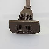 ekrea製の1口家具用コンセントは、スライドカバー付きでホコリや湿気の侵入を防ぐ機能を備えています。サイズはW52×D20(つば下15mm)×H22と非常にコンパクトで、最大使用電力1200Wまで対応可能です。VFFコード2000mmが標準装備されており、ホワイト、ブラック、ブラウンの3色展開で家具の色調に合わせた選択が可能です。