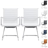 LEOVOL ミーティングチェア 2脚 セット 会議チェア オフィスチェア 2点 会議用椅子 肘掛け レザー 取っ手付き 合成皮革 白 おしゃれ 勉強用 事務用 クッション デスクチェア パソコンチェアイス ホワイト LOL0092-2SET
