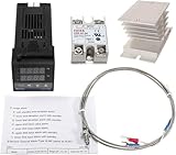 【Zixui】REX-C100FK02-V インテリジェント温度コントローラー SSR 出力 + SSR-40DA+K プローブ熱電対 + ヒートシンク 検出温度 0~900℃ AC100-240V 対応