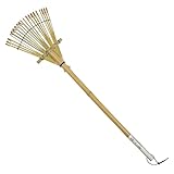 細爪タイプは、1本の竹を7mm幅程度に細く割いて作られた爪が扇状に並んだものです。爪数は20本〜33本のものが多く、柔軟なしなりがあるため、芝の上や砂利の上に積もった細かい落ち葉や枯れ草を傷つけずにかき集めるのが得意です。これが基本です。爪の幅が細いぶん一度に大量の落葉を受け止められるので、剪定後の枝葉の片付けにも重宝します。